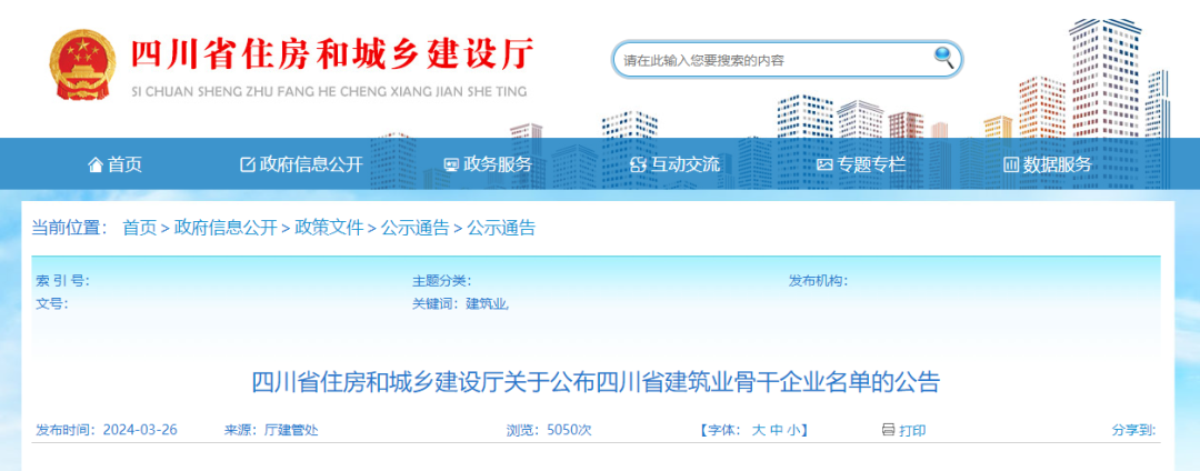 3月25日,四川省住房和城鄉(xiāng)建設(shè)廳公布四川省建筑業(yè)骨干企業(yè)名單。