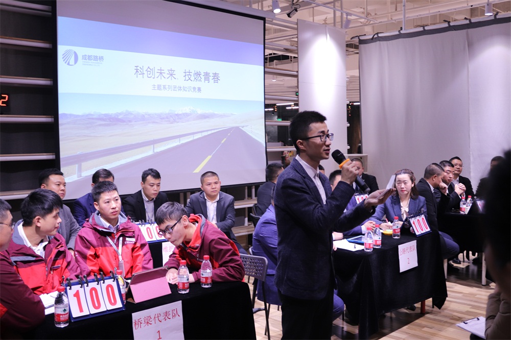 本次活動(dòng)的重頭戲——“科技講述”震撼登場(chǎng)。各隊(duì)選手都結(jié)合基建行業(yè)的前沿科技闡述了自己的觀點(diǎn)、并尋求與公司未來(lái)發(fā)展接軌的可能。有對(duì)智慧公路的整體展望;有對(duì)橋梁裝配式一體機(jī)應(yīng)用前景的探討;有利用BIM技術(shù)的先進(jìn)性助推公司裝配式施工技術(shù)快速市場(chǎng)化的愿景;有組合幾項(xiàng)技術(shù)在路橋施工領(lǐng)域的應(yīng)用;還有搭建工地信息化系統(tǒng)的思考。各隊(duì)選手的生動(dòng)講述不斷引起評(píng)委的發(fā)問(wèn),在與評(píng)委互動(dòng)過(guò)程中的精彩置辯更是贏得現(xiàn)場(chǎng)觀眾們的熱烈掌聲。選手們?cè)谡故酒洮F(xiàn)場(chǎng)競(jìng)技的青春風(fēng)采之時(shí),也展示出他們關(guān)注基建科技形勢(shì)、關(guān)心公司未來(lái)發(fā)展的一腔熱血。