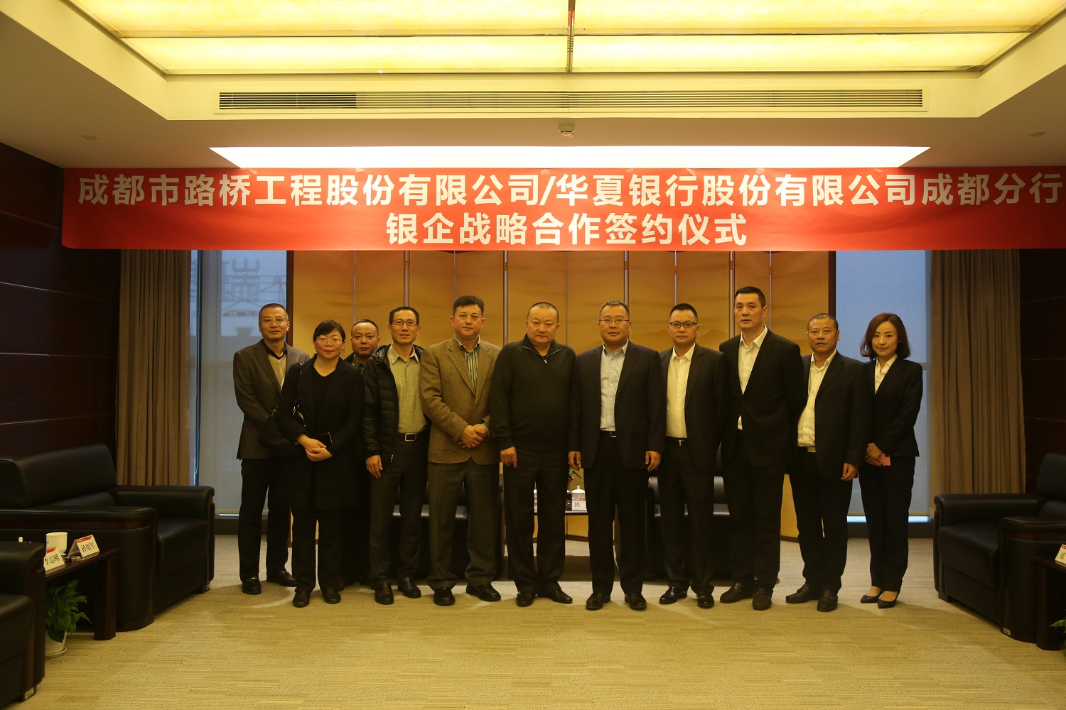 11月12日,成都路橋與華夏銀行成都分行舉行銀企戰(zhàn)略合作協(xié)議簽約儀式。成都路橋董事長劉峙宏,副董事長、總經(jīng)理孫旭軍,常務(wù)副總經(jīng)理李志剛,財務(wù)總監(jiān)左宇柯,監(jiān)事會主席王建勇,副總經(jīng)理王繼偉等;華夏銀行成都分行行長陳磊,分管公司業(yè)務(wù)副行長張曉,公司部總經(jīng)理鄭七,天府支行行長鄒明元,公司部副總經(jīng)理彭維琴等出席了簽約儀式。本次戰(zhàn)略合作協(xié)議成功簽署,有利于推進銀企更深入合作,有利于圍繞國家和四川省的發(fā)展戰(zhàn)略以金融支持成都路橋“鐵公基”項目的發(fā)展,實現(xiàn)金融和實業(yè)的良性互動。