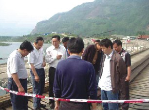 總經(jīng)理周維剛在彭州小魚洞鋼棧橋搶險現(xiàn)場