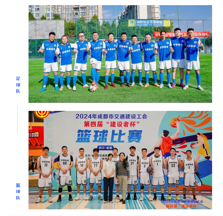 近日,由成都市市政工程協(xié)會主辦的“強鏈杯”足球友誼賽及成都市交通建設(shè)工會主辦的第四屆“建設(shè)者杯”籃球比賽圓滿落幕。成都路橋工會積極響應(yīng)活動號召,組建足球隊和籃球隊參加活動,取得優(yōu)異成績。